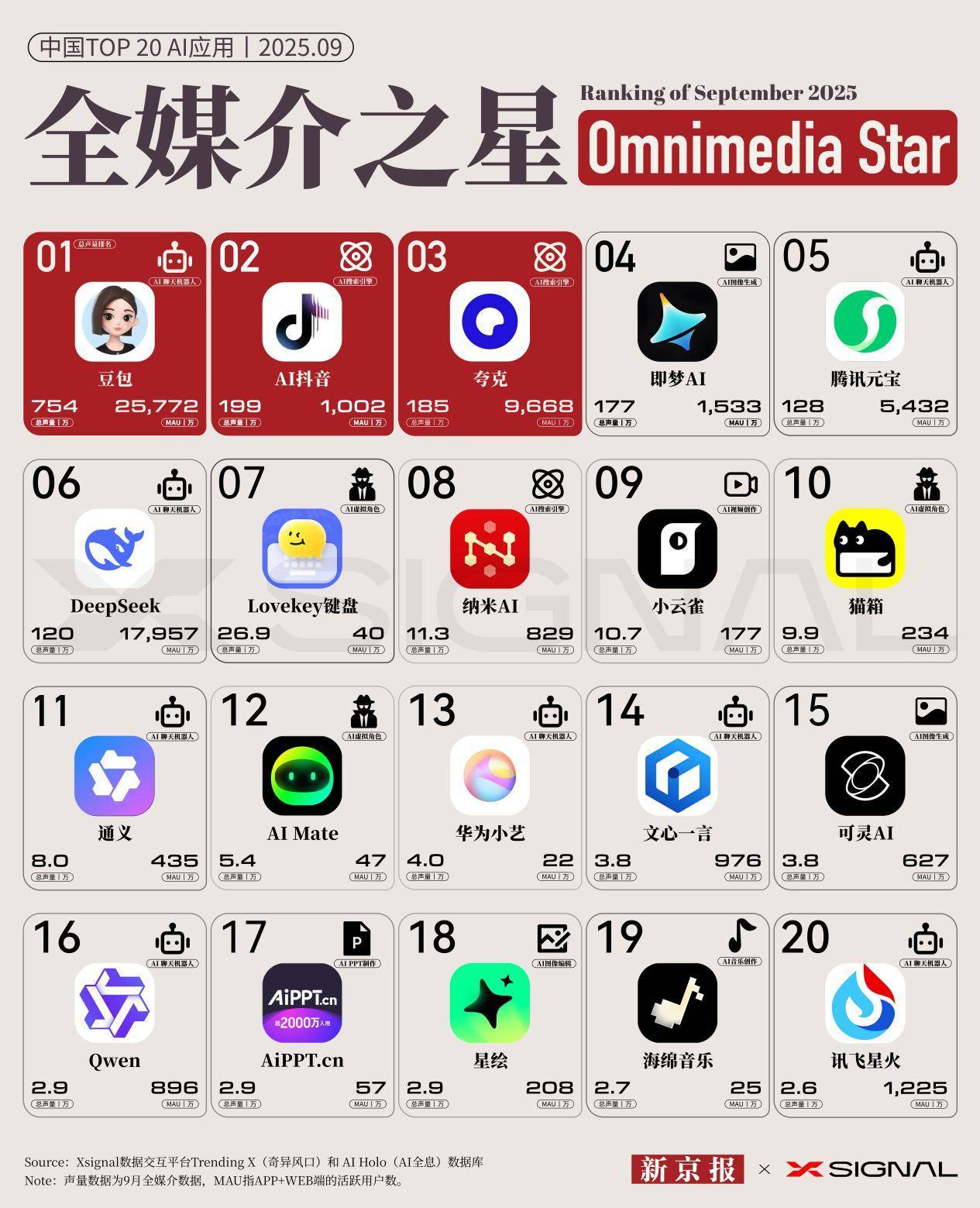 开云APP下载新京报联合Xsignal发布9月“全媒介之星”中国AI应用榜