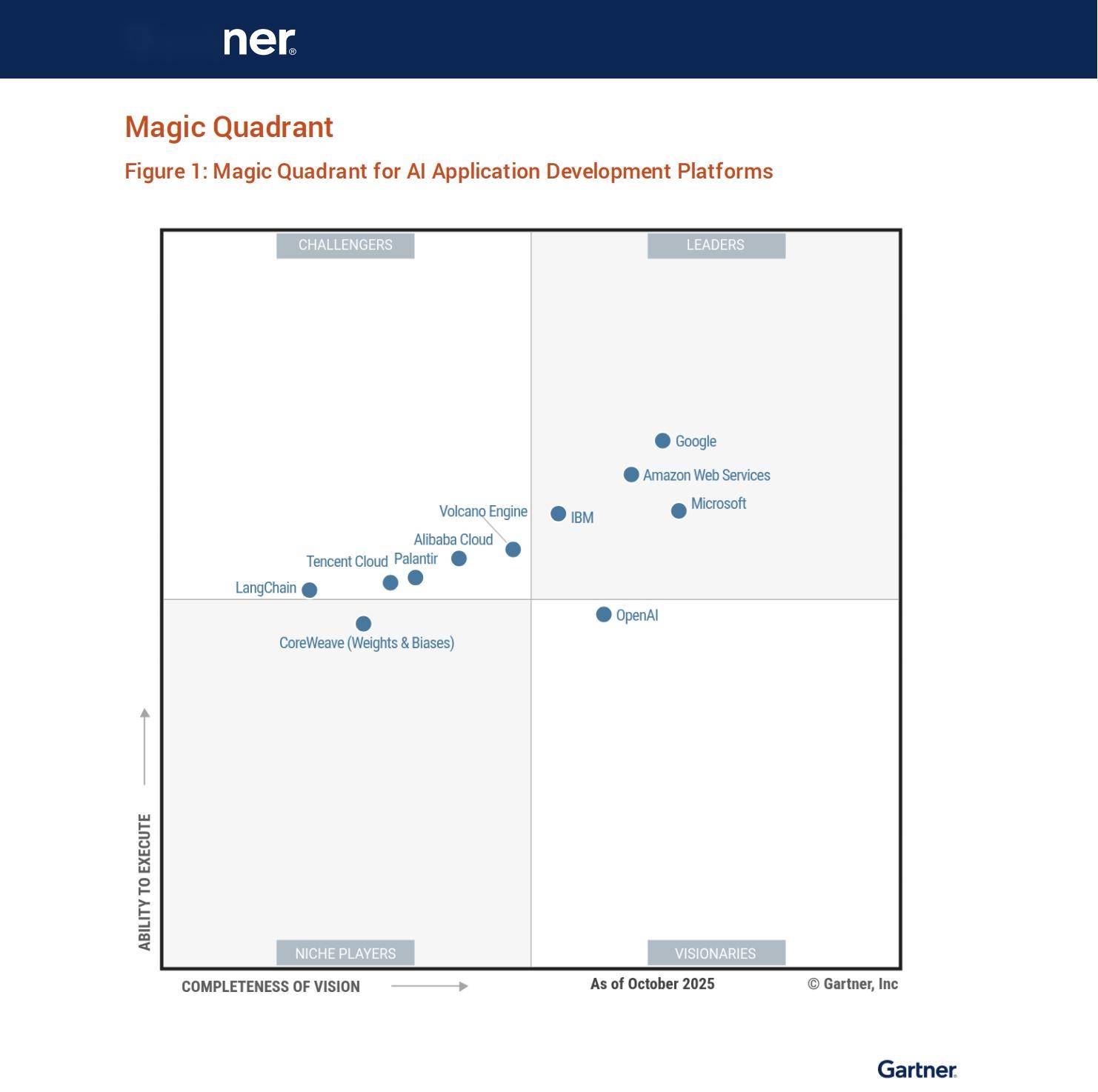 从评测结果看,共有11家厂商参与本次评测,其中中国厂商三家。领导者包括Google、AWS、Microsoft、IBM,这些厂商同时具备强大的产品体系与执行能力,在智能体(Agent)、模型平台、企业级AI落地上的成熟度,以及庞大客户群与全球化能力。